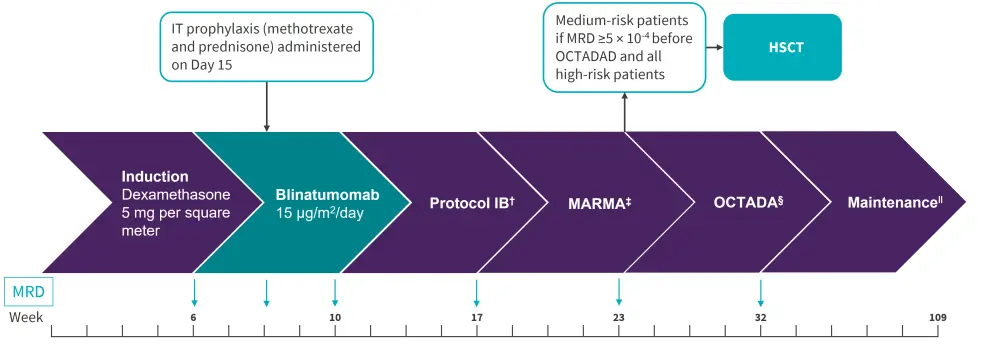 Figure 1. Treatment protocol of theInterfant-06 trial with the addition of blinatumomab therapy*