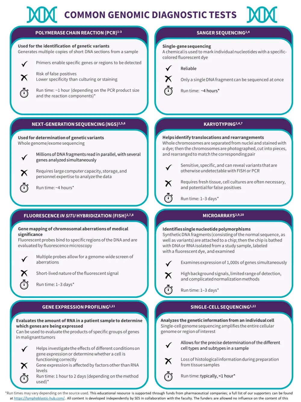 In view of this, the ALL Hub is proud to present a visual summary of the genomic diagnostic techniques commonly used in clinical practice. We outline the use of each technique, as well as their associated advantages and disadvantages.