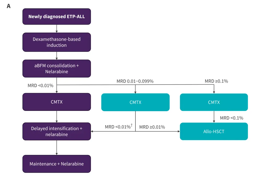 aBFM, augmented Berlin-Frankfurt-Münster; ETP-ALL, early T-cell precursor acute lymphoblastic leukemia; CMTX, Capizzi methotrexate; CR2, second complete remission; HSCT, hematopoietic stem cell transplant; MRD, minimal residual disease.