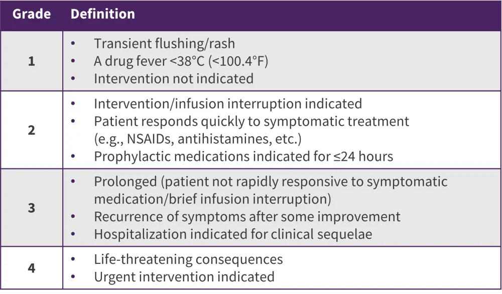 Table 2. CTCAE classification of allergic reactions*