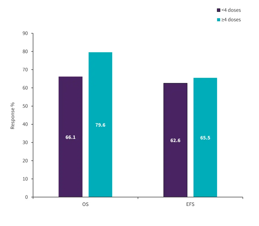 Figure 1. Five-year OS and EFS rates for patients receiving <4 and ≥4 doses of PEG-asparaginase*