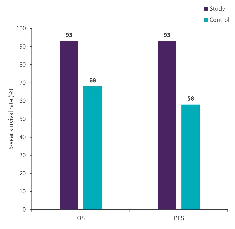 Figure 1. 5-year OS and PFS in the study vs control group*