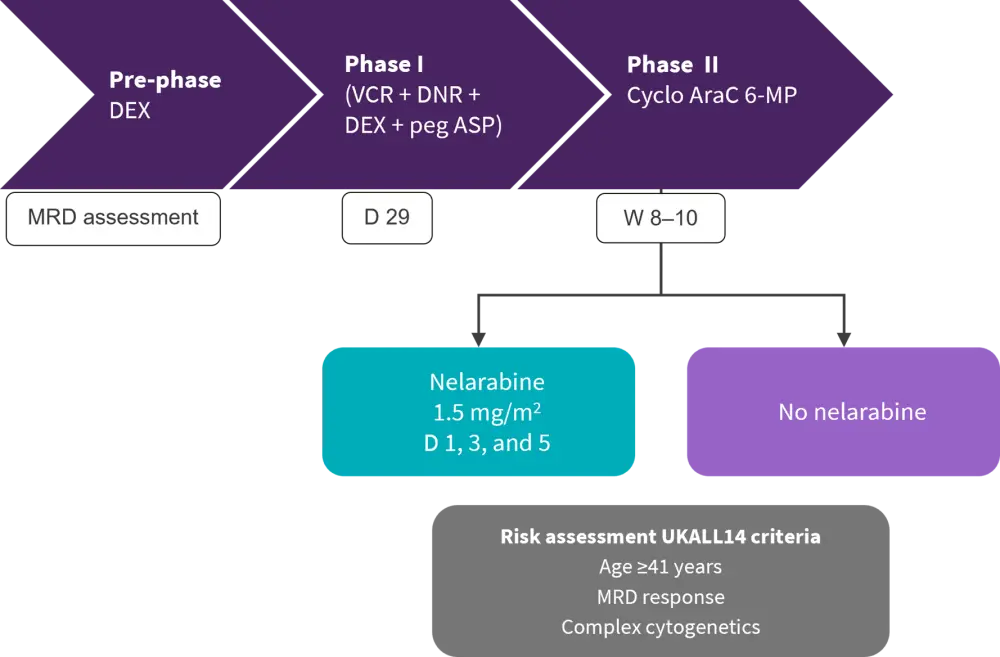 T-cell acute lymphoblastic leukemia (T-ALL) is an aggressive variant of ALL with very poor prognosis mainly affecting children, adolescents, and young adults (AYA). The treatment for AYA with T-ALL is based on pediatric protocol in the UK. Nelarabine is a DNA-terminating nucleoside used in the treatment of patients with T-ALL. Toxicity events related to the use of nelarabine as a single agent or in combination with chemotherapy have been previously reported in patients with T-ALL, particularly those with relapse/refractory T-ALL. However, a recent USA study, previously reported by the ALL Hub, has shown improved survival with the addition of nelarabine to standard chemotherapy for pediatric and young adult patients with T-ALL.
