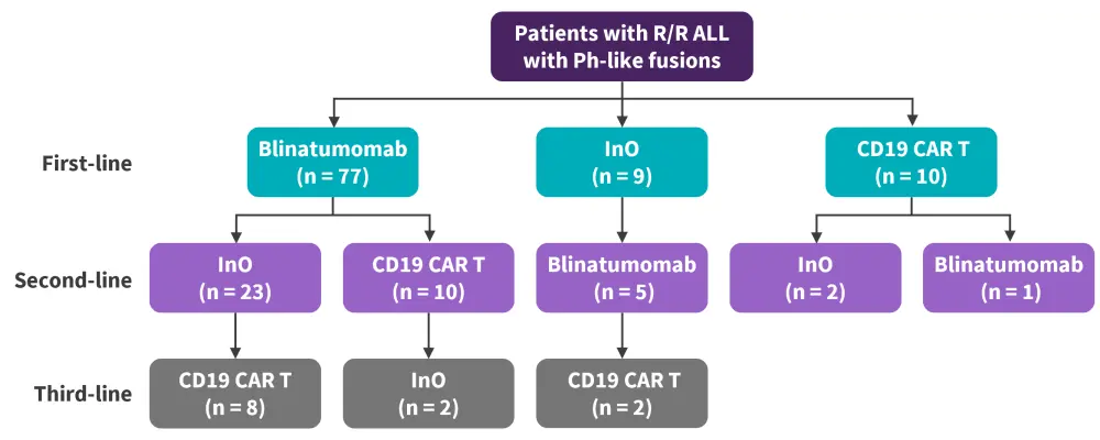 This was a single-center retrospective study including adult patients with R/R Ph-like ALL who completed at least one treatment cycle of a novel salvage therapy (InO, blinatumomab, and/or CD19 CAR T-cell therapy), and were evaluable post-treatment.