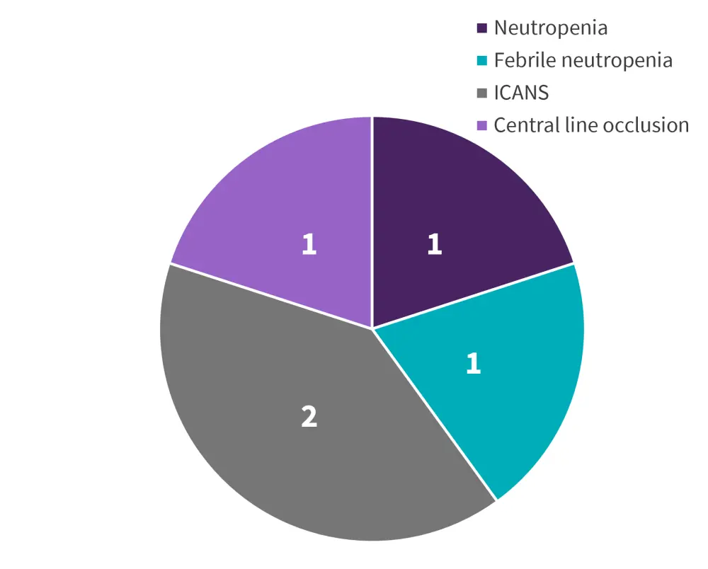 Venetoclax in combination with blinatumomab was well tolerated, with five serious adverse events reported (Figure 2). No treatment-related mortality and no dose-limiting toxicities were reported.