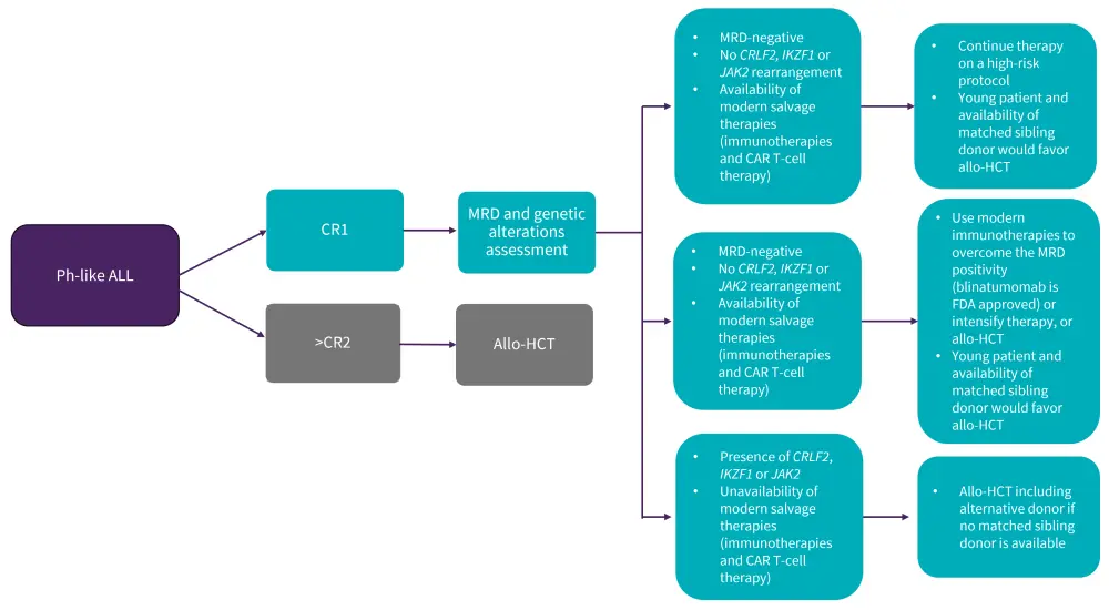 Allo-HCT, allogeneic hematopoietic stem cell transplantation; CAR T, chimeric antigen receptor T-cell; CR, complete remission; MRD, minimal residual disease; Ph-like ALL, Philadelphia chromosome-like acute lymphoblastic leukemia