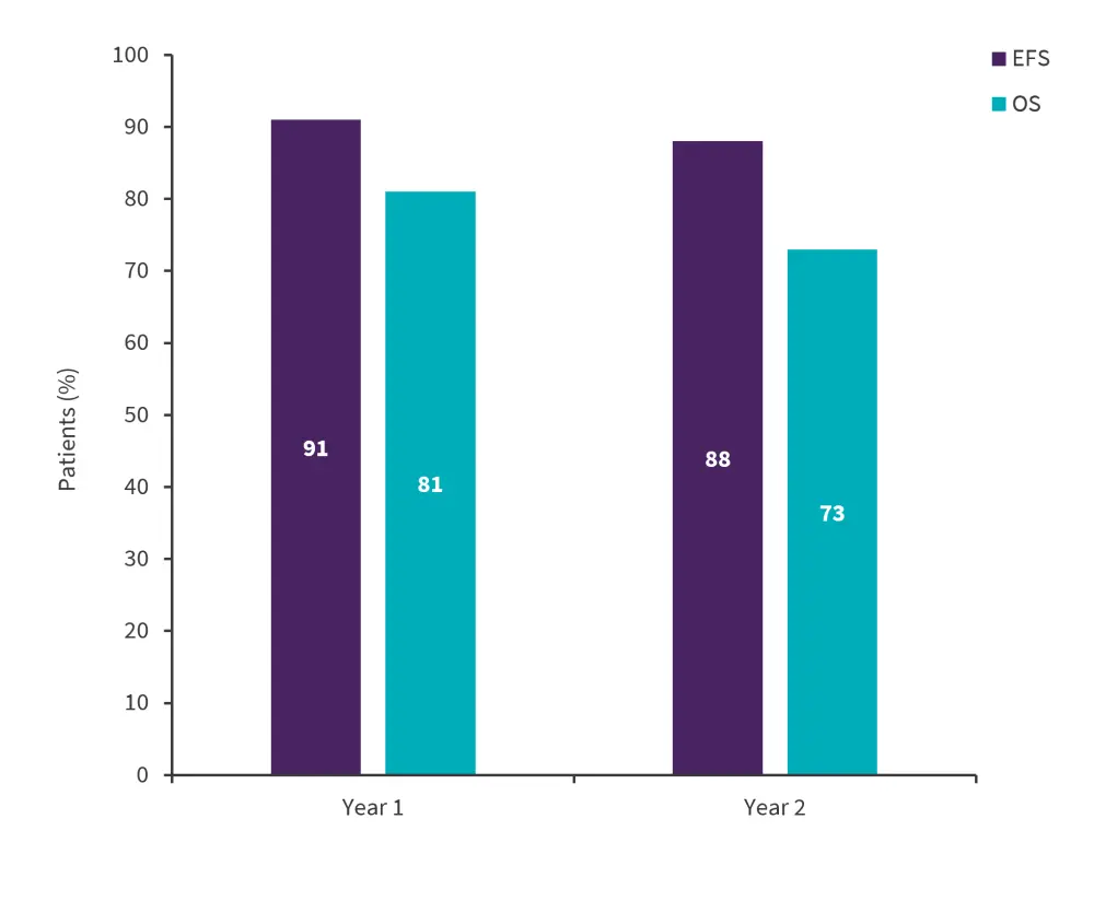 Secondary endpoints included remission rates, rate of minimal residual disease negativity, remission after induction treatment, relapse-free survival and overall survival at two 2-years, rate of deaths during induction/and or death in complete remission (CR), and the proportion of patients with molecular relapse.