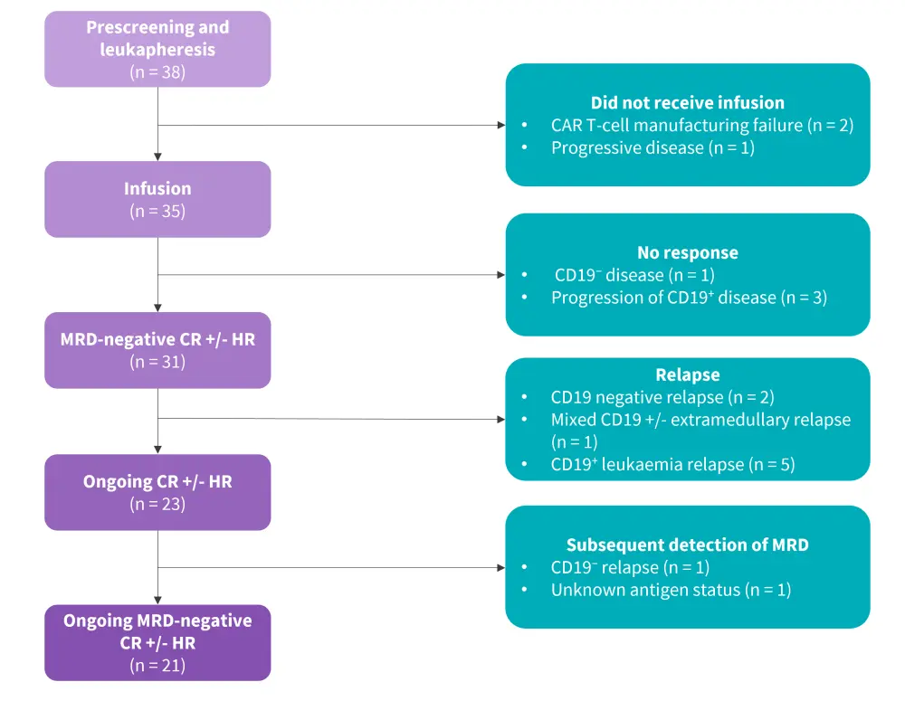 CAR, chimeric antigen receptor; CR, complete response; HR, hematological recovery; MRD, measurable residual disease.