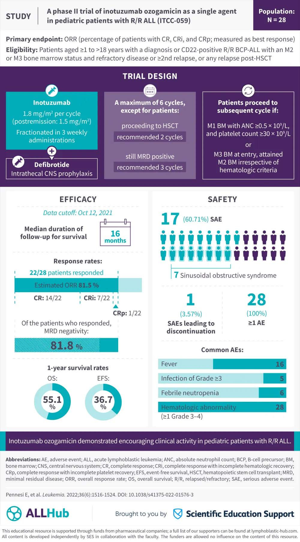 The ALL Hub is pleased to present a visual abstract representing key data from the phase II ITCC-059 trial evaluating inotuzumab ozogamicin as single agent in pediatric patients with relapsed/refractory acute lymphoblastic leukemia.